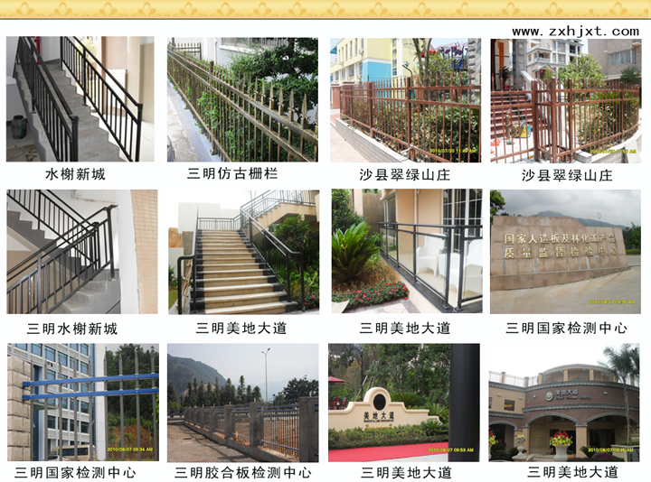 | 西安秦嶺山水 | 深圳華來利實(shí)業(yè)圣莫利斯 | 廣東梅州華僑城 | 中鐵一局深圳地鐵五號線的鐵路護(hù)欄 | 東莞長安第二人民法院宿舍樓的樓梯護(hù)欄 |
